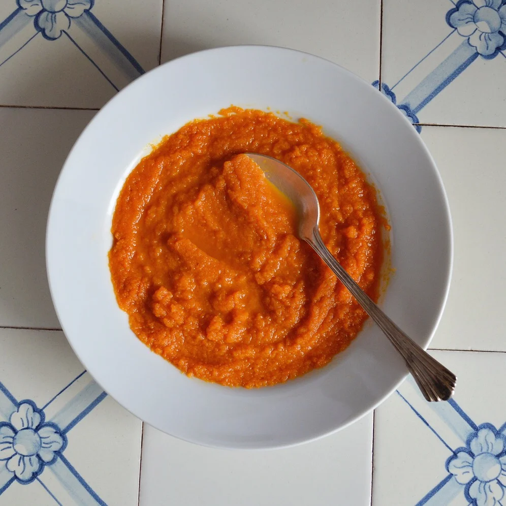 - Add the onions to the pot of carrots. Purée with a hand mixer.