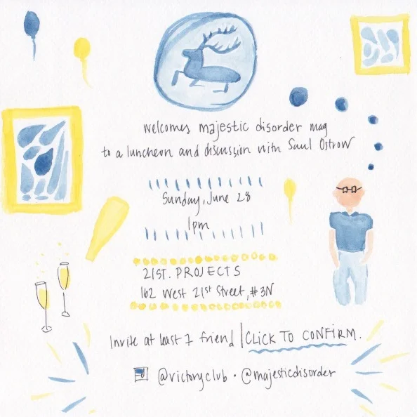 Victory Club welcomes friends of London-based magazine majestic disorder for 3 courses + wine at 21ST.PROJECTS. Saul Ostrow will host the luncheon. On the walls will be works from CPI's collection, and every guest will receive a copy of majestic disorder's fourth issue.