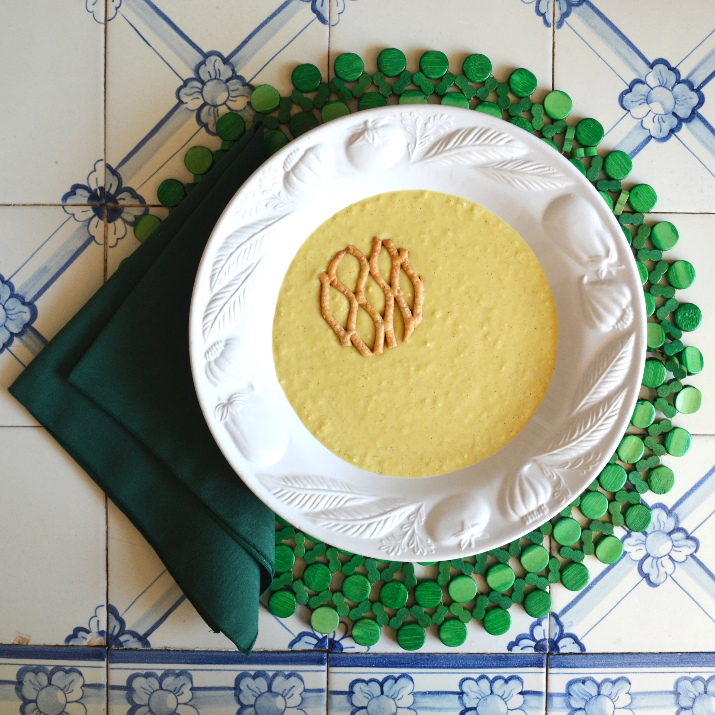 Every August, I find myself chasing summer: looking to savor every last moment of the Northeast's most bountiful season: spending time outside on the beach, wearing light clothes, and enjoying the year's ripe fruit. This August, I planned September's menus from the Hamptons, where the corn is sweetest, yellowest, and most delicious. With a dash of cinnamon, this soup matched the palette of one of Jennifer Martin's beautiful paintings perfectly.