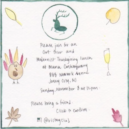Victory Club is hosting its annual Friendsgiving lunch at Mana Contemporary, a 2 million square foot museum in Jersey City. The menu will be a Modernist take on traditional Thanksgiving fare.