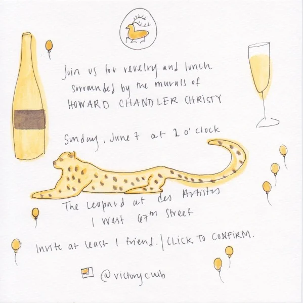 The murals by Howard Chandler Christie that adorn The Leopard will be the springboard for conversation. The full 3-course menu for the meal follows below and will be complemented with rosé.